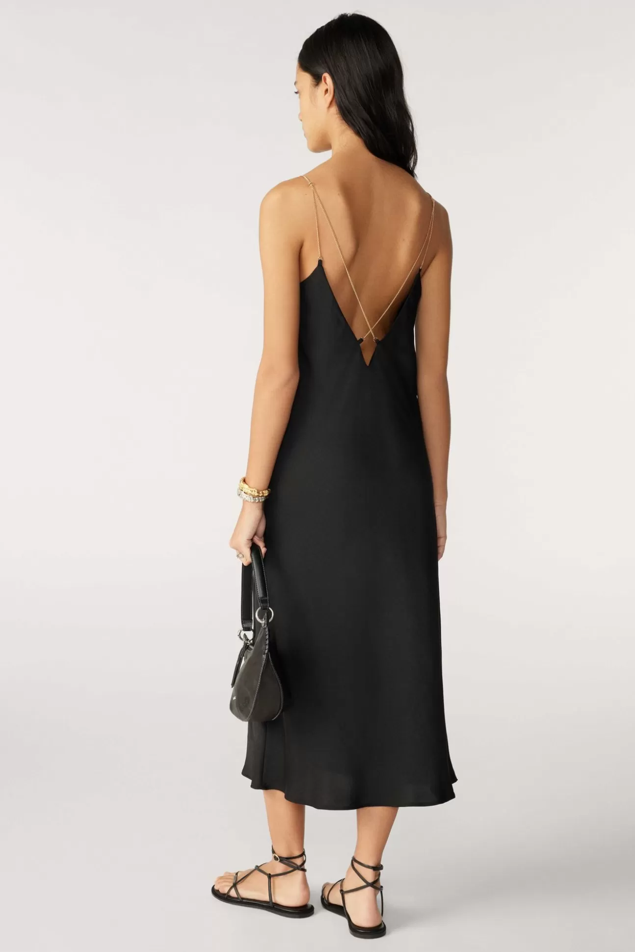 This Feminine Ba&Sh Siara Dress Is Full-On Glamorous. The Midi Dress Is Cut To Follow The Shape Of Your Body Without Being Too Tight. It Has Narrow Straps In A Golden Metal That Double And Cross In The Back To Heighten The Elegant Backless Style. The Dress Is Made In A Flowing Fabric With A Light Satiny Shine. Perfect For Dressy Evenings.